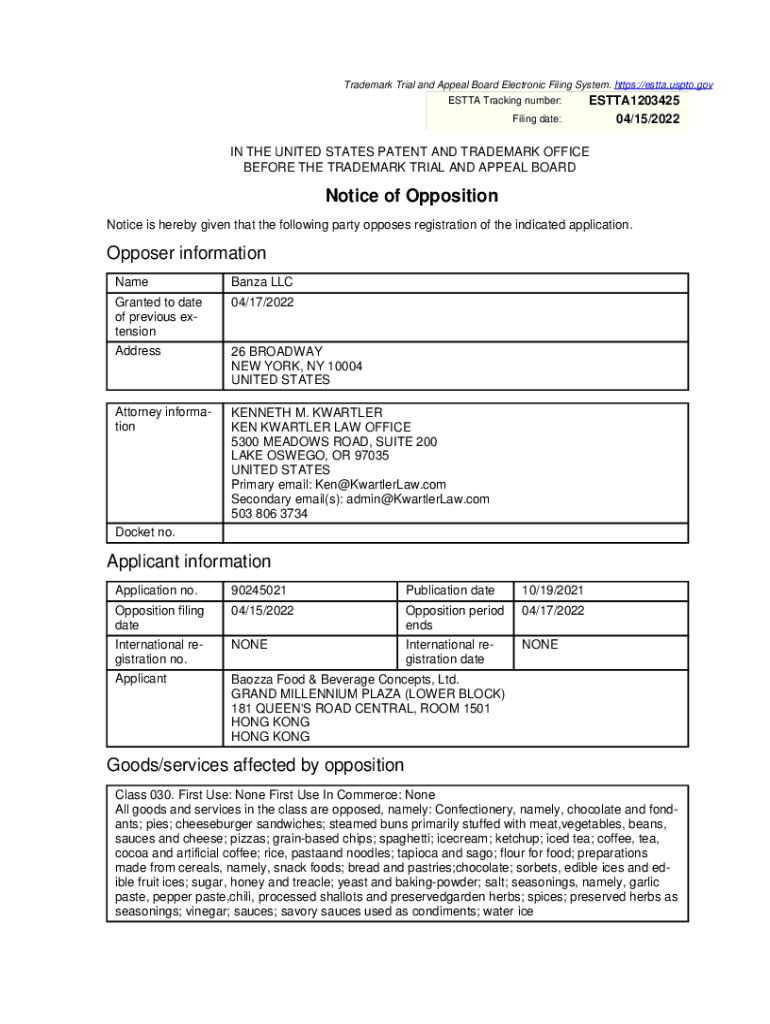 Individuals or businesses involved in the production, distribution, or sale of baozza food and beverages are typically required to file relevant documentation.