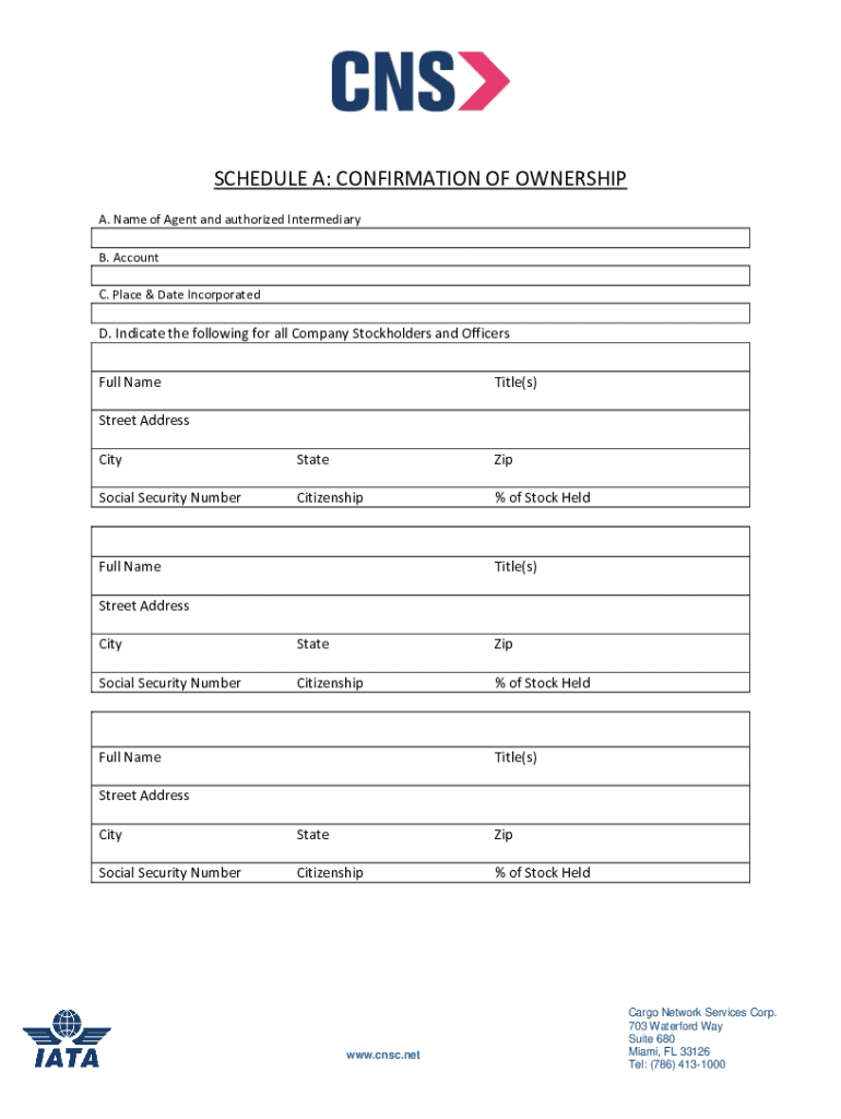 SCHEDULE A: CONFIRMATION OF OWNERSHIP