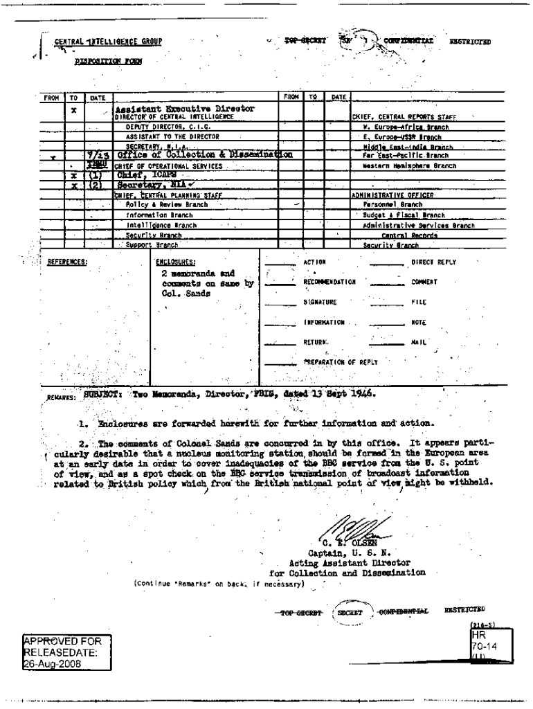 eRESTRICTEDDISPOSITION FORMFROMTOFROMDATEX\'.TODATEAssistant Executive Director\' OF CENTRAL INTELLIGENCE