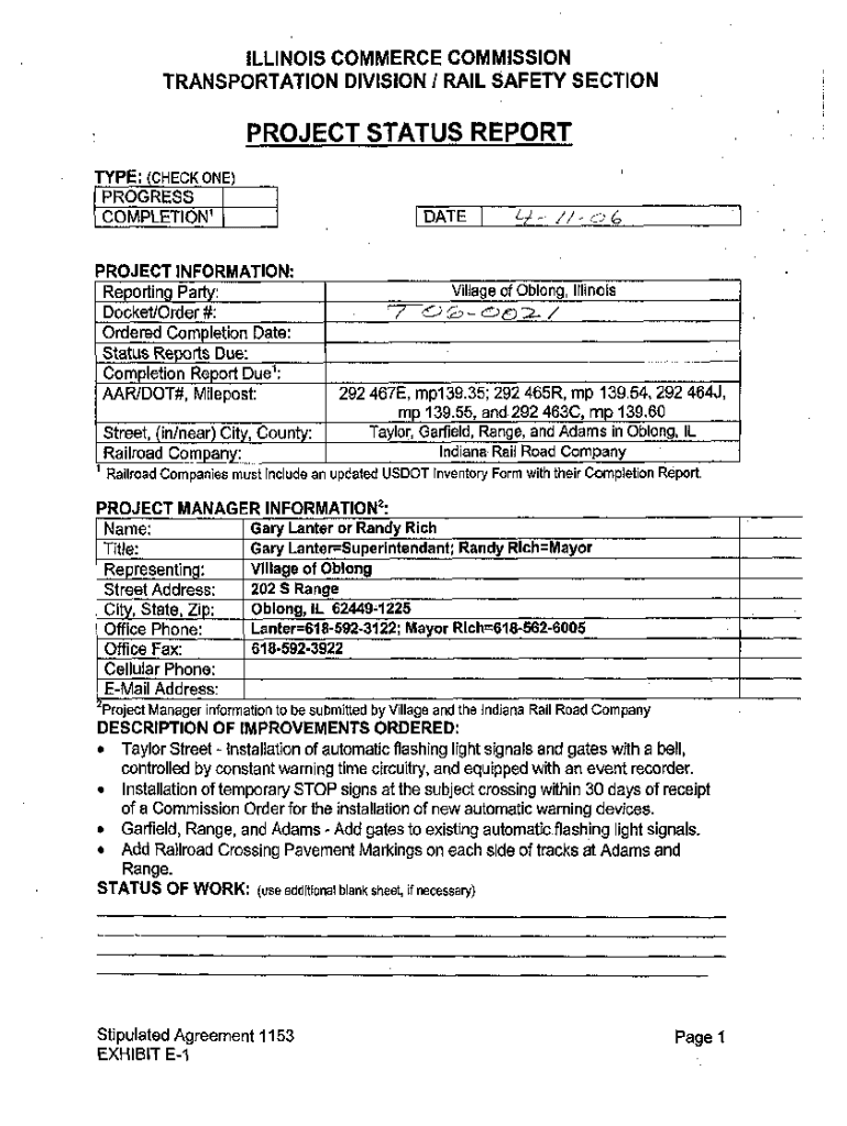 TRANSPORTATION DIVISION / RAIL SAFETY SECTIONPROJECT STATUS REPORT