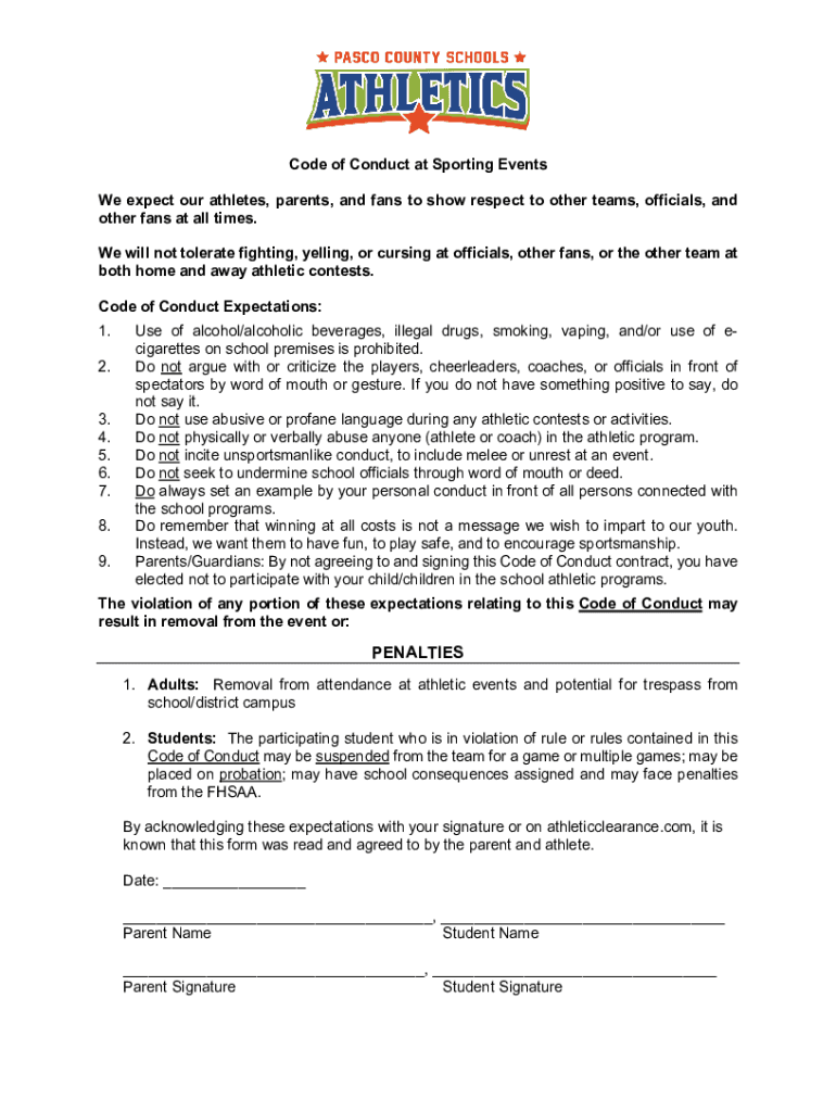 Code of Conduct at Sporting Events We expect our athletes, parents, and fans to show respect to other teams, officials, and other fans at all times. We will not tolerate fighting, yelling, or cursing