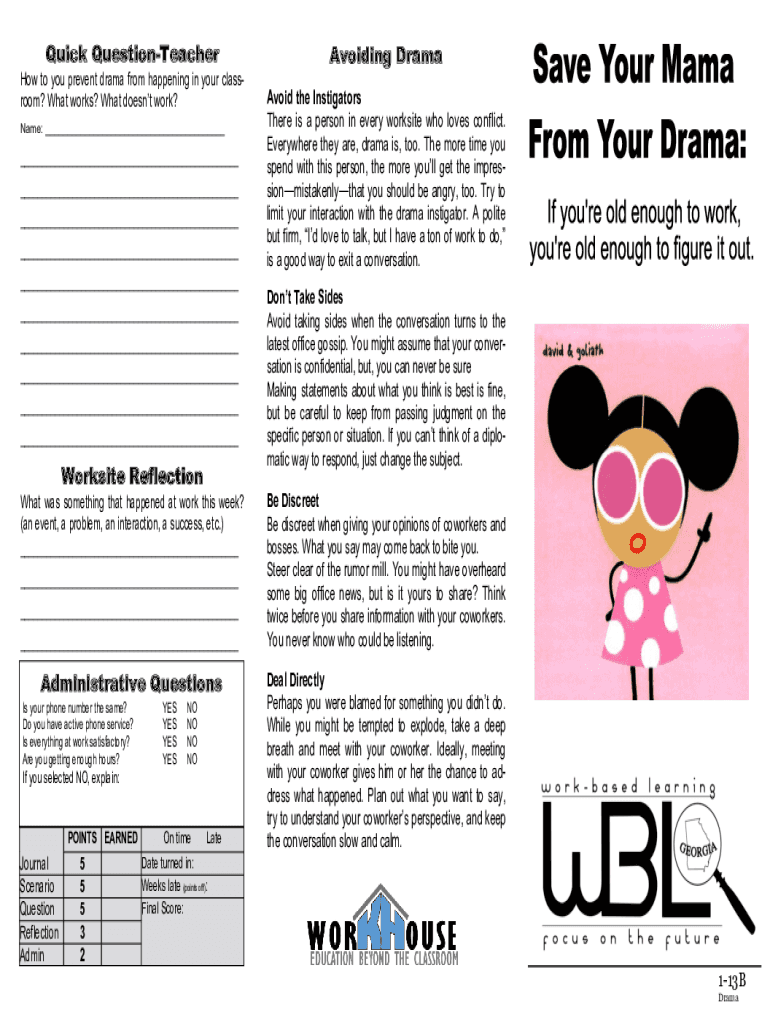 Quick QuestionTeacher How to you prevent drama from happening in your classroom? What works? What doesn't work? Name: ___ ___ ___ ___ ___ ___ ___ ___ ___ ___ ___Worksite Reflection What was something