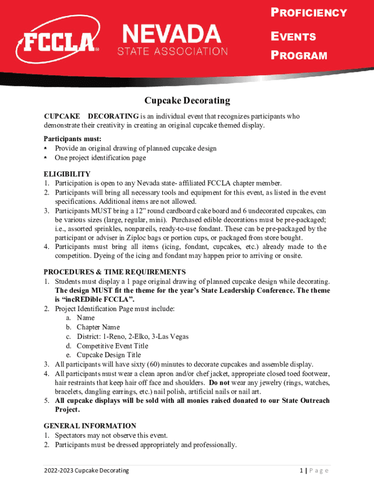 PROFICIENCY EVENTS PROGRAM Cupcake Decorating is an individual event that recognizes participants who demonstrate their creativity in creating an original cupcake themed display. Participants must: