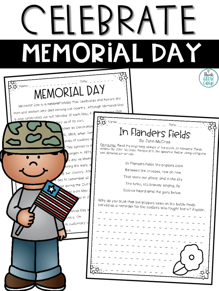 CELEBRATEContents: Informational Passages & Reader Response Questions×Lets Learn about Memorial Day *A Symbol of Remembrance: The Red Poppy *Memorial Day and Veterans Day *Flanders Fields Poem Look