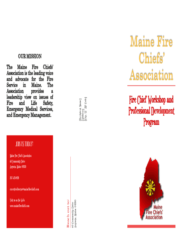 OUR MISSION[Recipient Name] [Address] [City, ST ZIP Code]The Maine Fire Chiefs Association is the leading voice and advocate for the Fire Service in Maine. The Association provides a leadership view