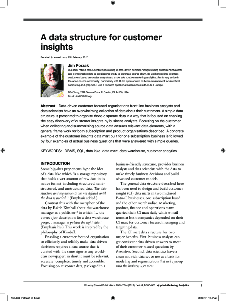 A data structure for customer insights Received (in revised form): 17th February, 2017Jim Portal is a semiretired data scientist specializing in data driven customer insights using customer behavioral