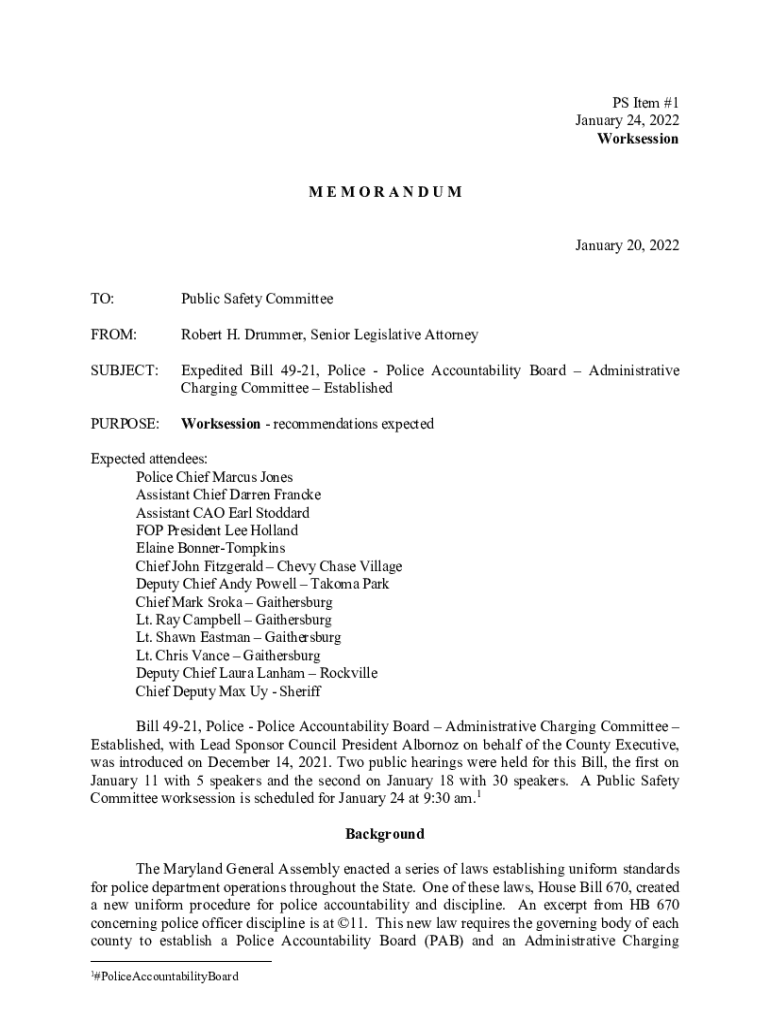 TO:Public Safety CommitteeFROM:Robert H. Drummer, Senior Legislative AttorneySUBJECT:Expedited Bill 4921, Police Accountability