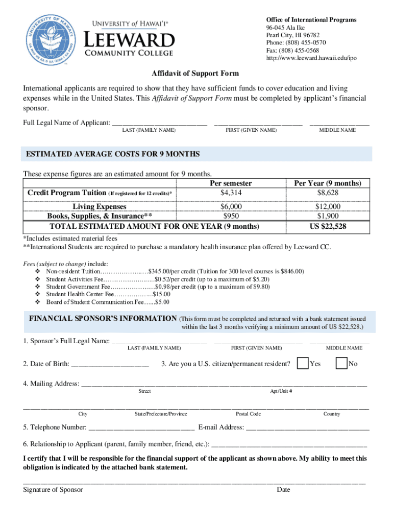 Office of International Programs 96045 Ala Ike Pearl City, HI 96782 Phone: (808) 4550570 Fax: (808) 4550568 http://www.leeward.hawaii.edu/ipoAffidavit of Support Form International applicants are