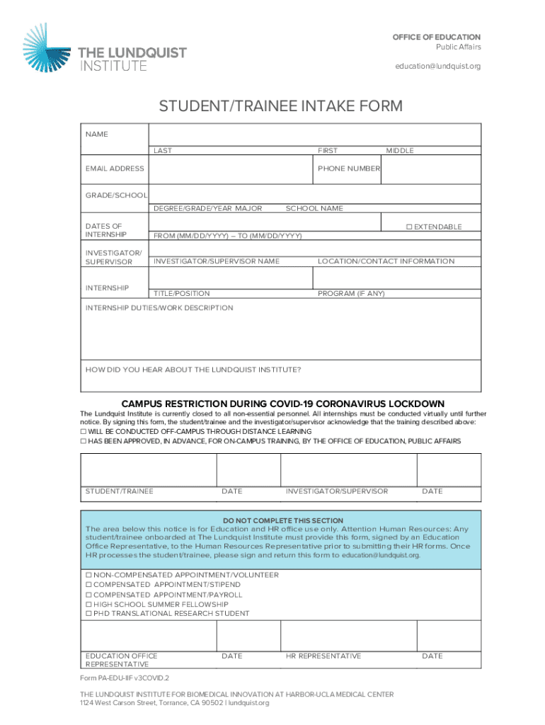 education@lundquist.orgSTUDENT/TRAINEE INTAKE FORM