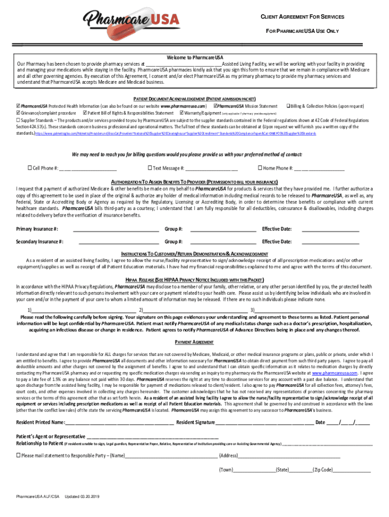 Our Pharmacy has been chosen to provide pharmacy services at ___Assisted Living Facility, we will be working with your