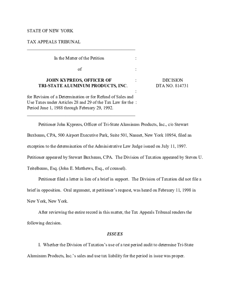 Get the free New York Tax Tribunal Finds Taxpayer's Petition Untimely, ...