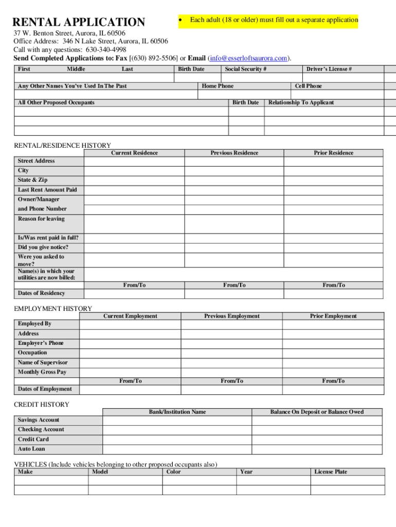 RENTAL APPLICATIONEach adult (18 or older) must fill out a separate application37 W. Benton Street, Aurora, IL 60506 Office Address: 346 N Lake Street, Aurora, IL 60506 Call with any questions: 6303404998