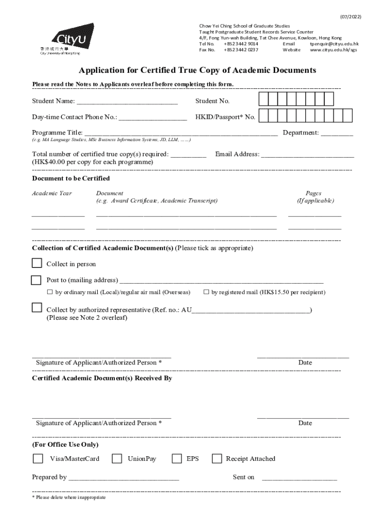 Get the free Academic TranscriptChow Yei Ching School of Graduate ...