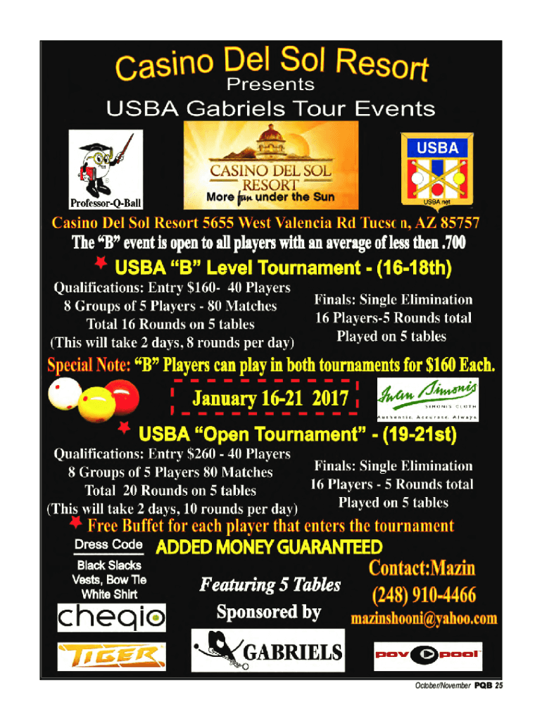 All professional billiards players who wish to participate in the tournament must file the usba tour event at.