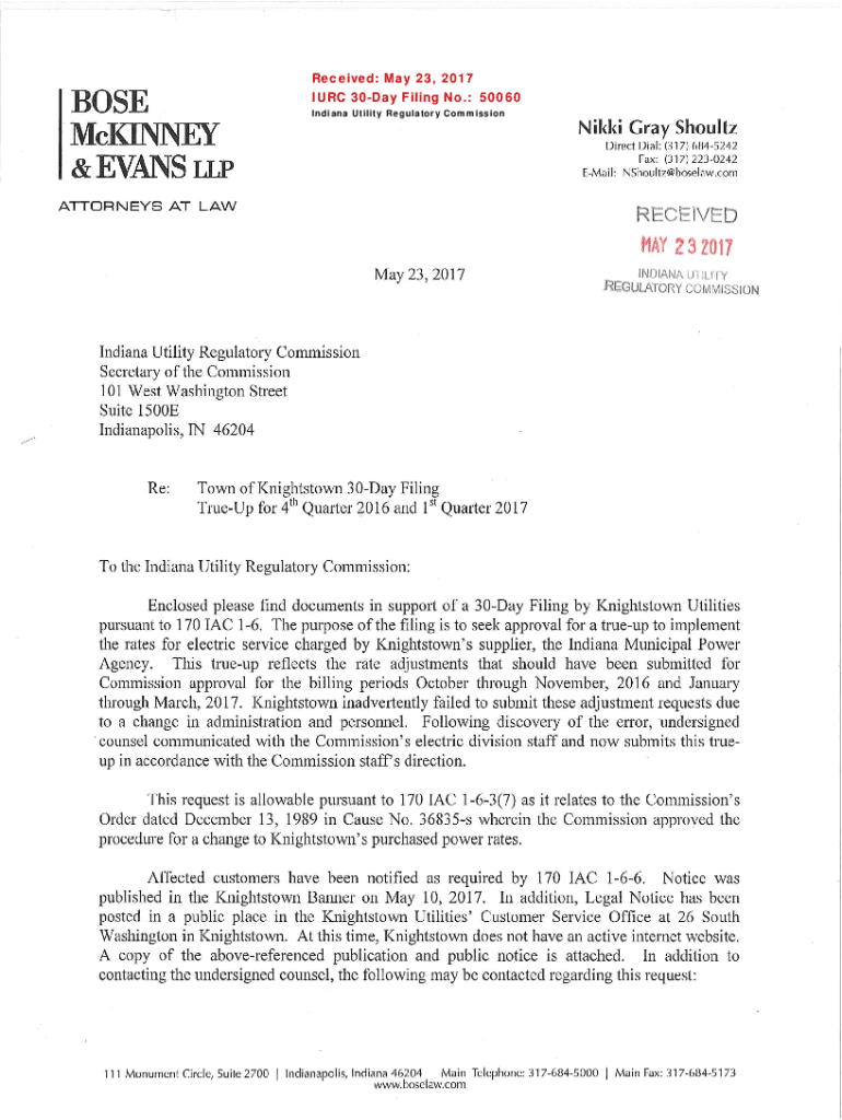 Get the free Water/Sewer Division's 30-Day Filings - IURC