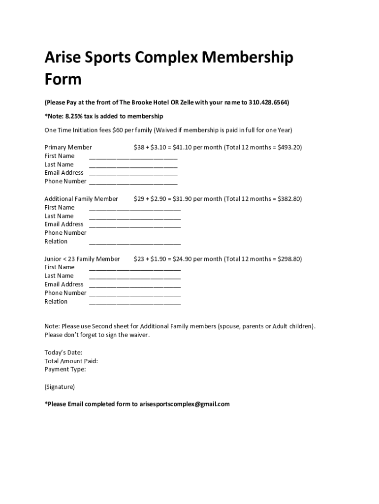 How to fill out arise sports complex membership