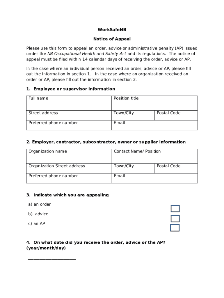 Instructions for the form The appeals process- Occupational Health and Safety