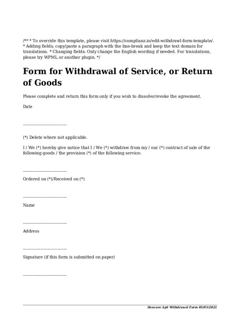 /** * To override this template, please visit https://complianz.io/editwithdrawlformtemplate/. * Adding fields; copy/paste a paragraph with the line break and keep the text domain for translations.