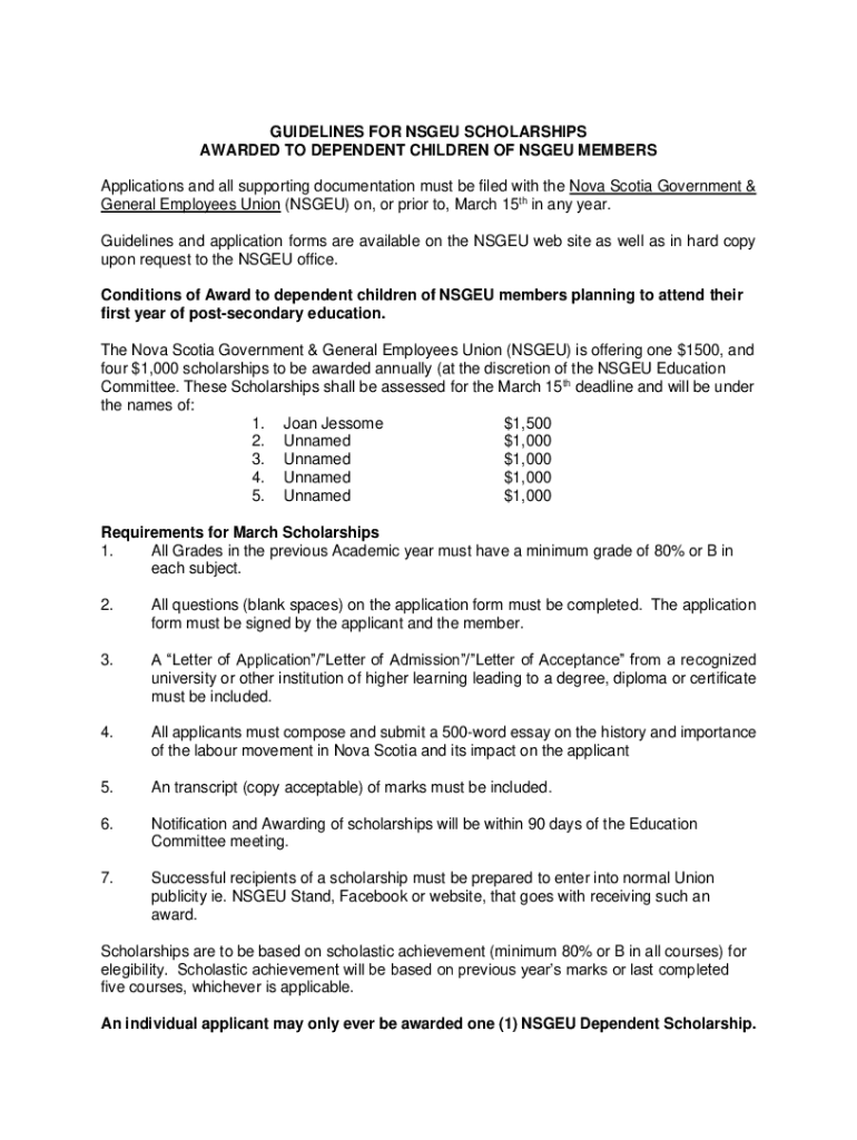 GUIDELINES FOR NIGEL SCHOLARSHIPS AWARDED TO DEPENDENT CHILDREN OF NIGEL MEMBERS Applications and all supporting documentation must be filed with the Nova Scotia Government & General Employees Union