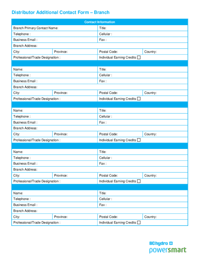 Distributor Additional Contact Formbranch is not the form you're looking for?Search for another form here.