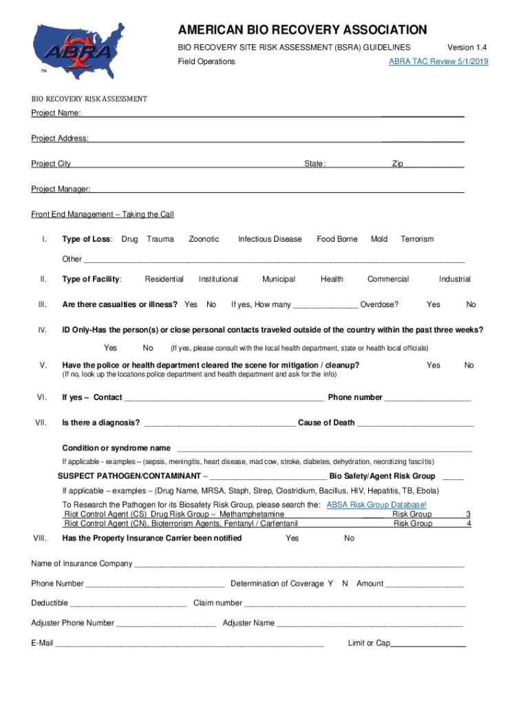 Field OperationsVersion 1.4ABRA TAC Review 5/1/2019BIO RECOVERY RISK ASSESSMENT