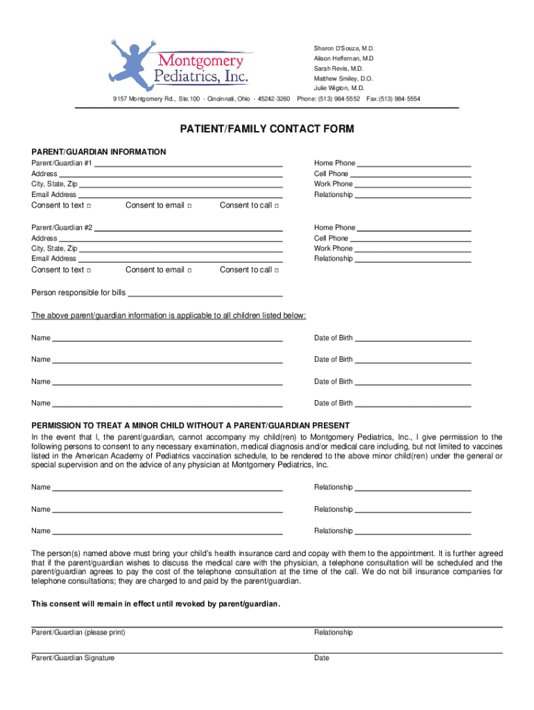 9157 Montgomery Rd., Ste.100 Cincinnati, Ohio 452423260Phone: (513) 9845552Fax:(513) 9845554PATIENT/FAMILY