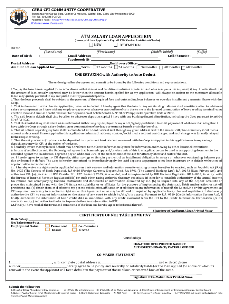 Employees who are in need of financial assistance and have a stable source of income can file for an ATM salary loan application.