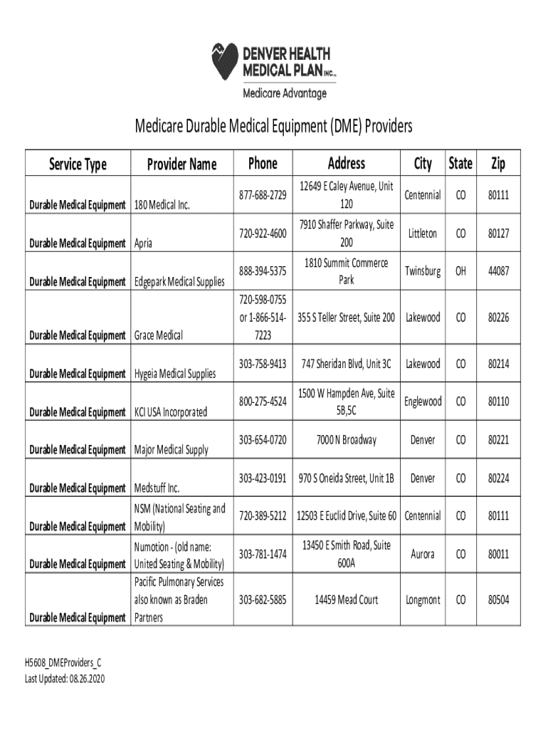Service TypeProvider Nameable Medical Equipment180 Medical Inc. Durable Medical EquipmentApriaDurable Medical EquipmentEdgepark Medical SuppliesDurable