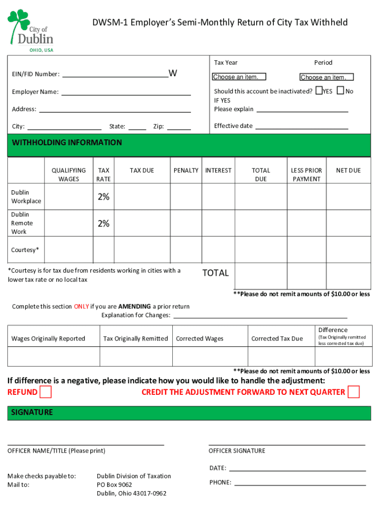 Get the free DWSM-1 Employers Semi-Monthly Return of City Tax Withheld LCK 23