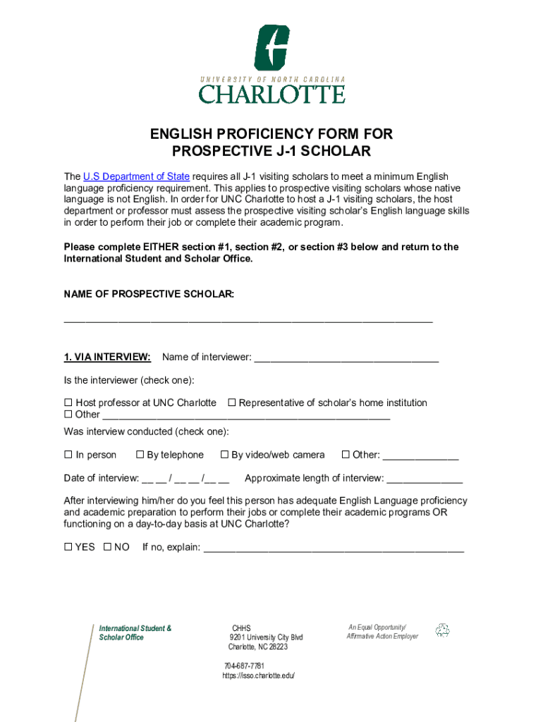 Get the free English Proficiency Report Form for Prospective J-1 Scholar ...