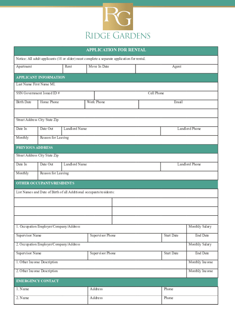 Notice: All adult applicants (18 or older) must complete a separate application for rental.