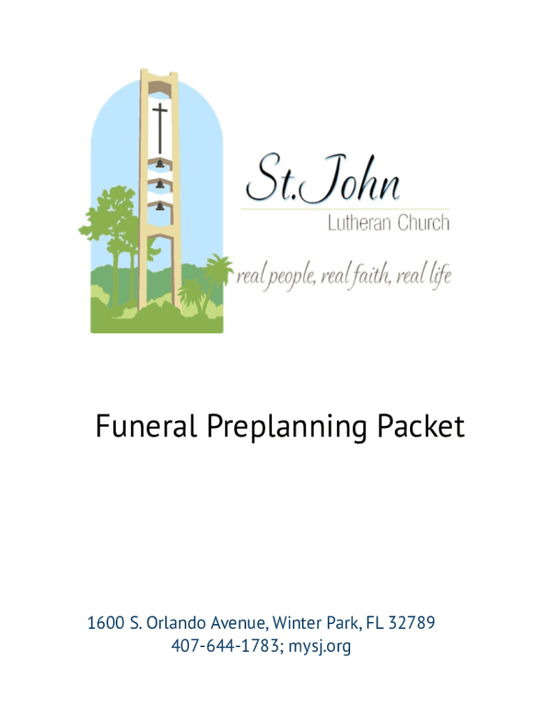Funeral Preplanning Packet1600 S. Orlando Avenue, Winter Park, FL 32789 4076441783; Myst.org 1Funeral Planning Sheet ___ We know that Christ, being raised from the dead, will never die again; death