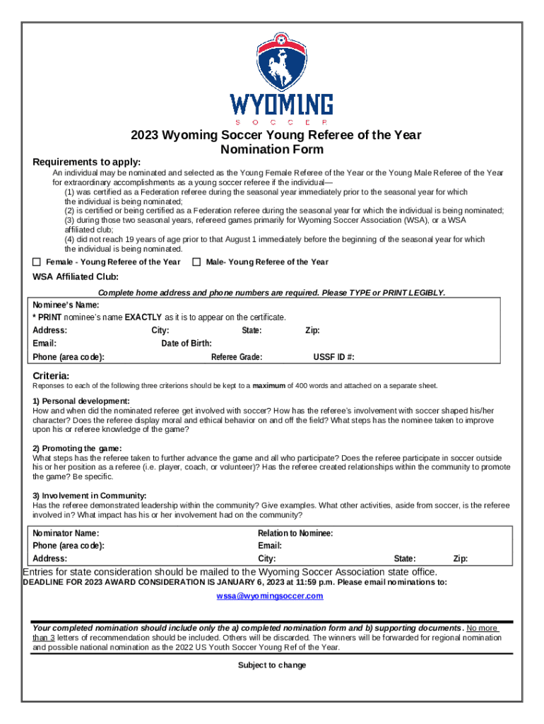 Frequently asked questions about the form Nominate a Young Referee of the Year