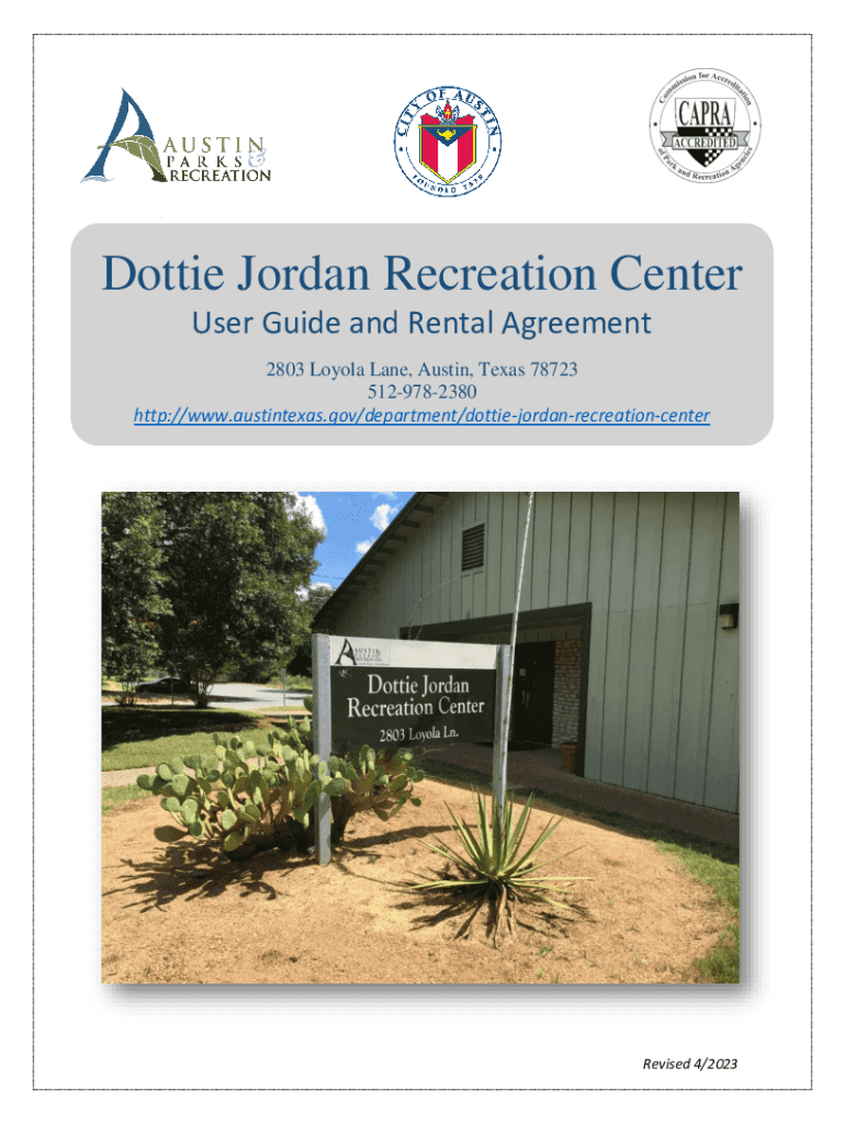 Lottie Jordan Recreation Center User Guide and Rental Agreement 2803 Loyola Lane, Austin, Texas 78723 5129782380 http://www.austintexas.gov/department/dottiejordanrecreationcenterRevised 4/2023Dottie