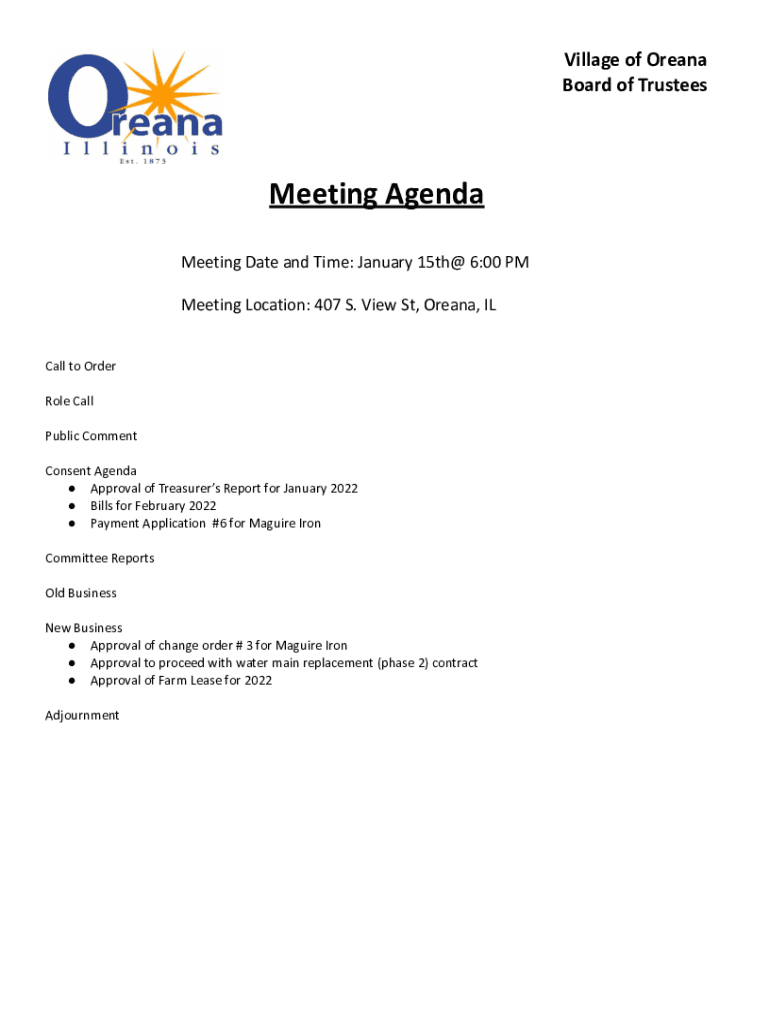 Get the free Village of Oreana Illinois - Agenda for Tuesday's Board ...