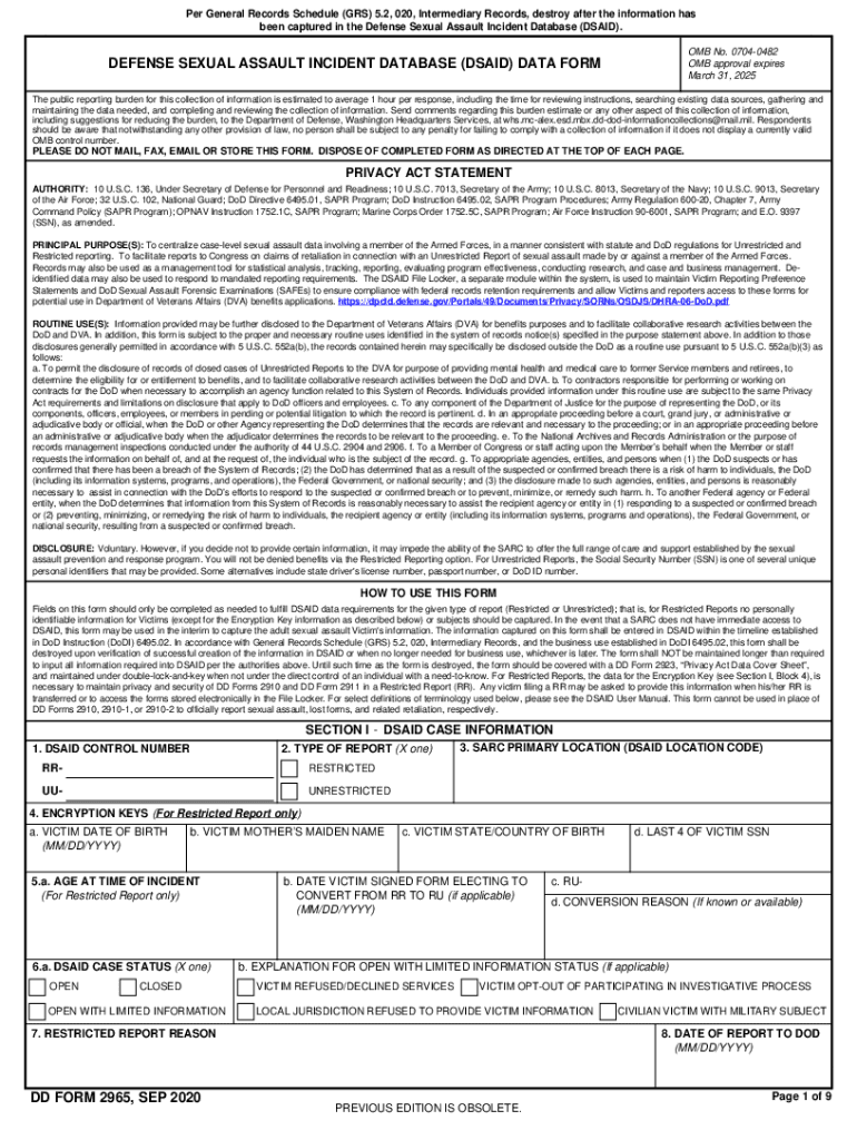To fill out a defense sexual assault incident report, one must provide detailed information about the incident, including the date, time, location, and individuals involved.