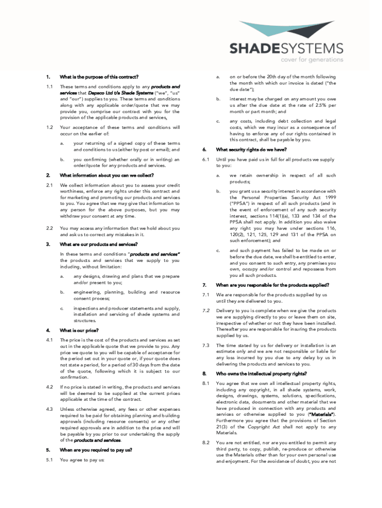 1. What is the purpose of this contract?1.1These terms and conditions apply to any products and services that Disco Ltd t/a Shade Systems (we, us and our) supplies to you. These terms and conditions