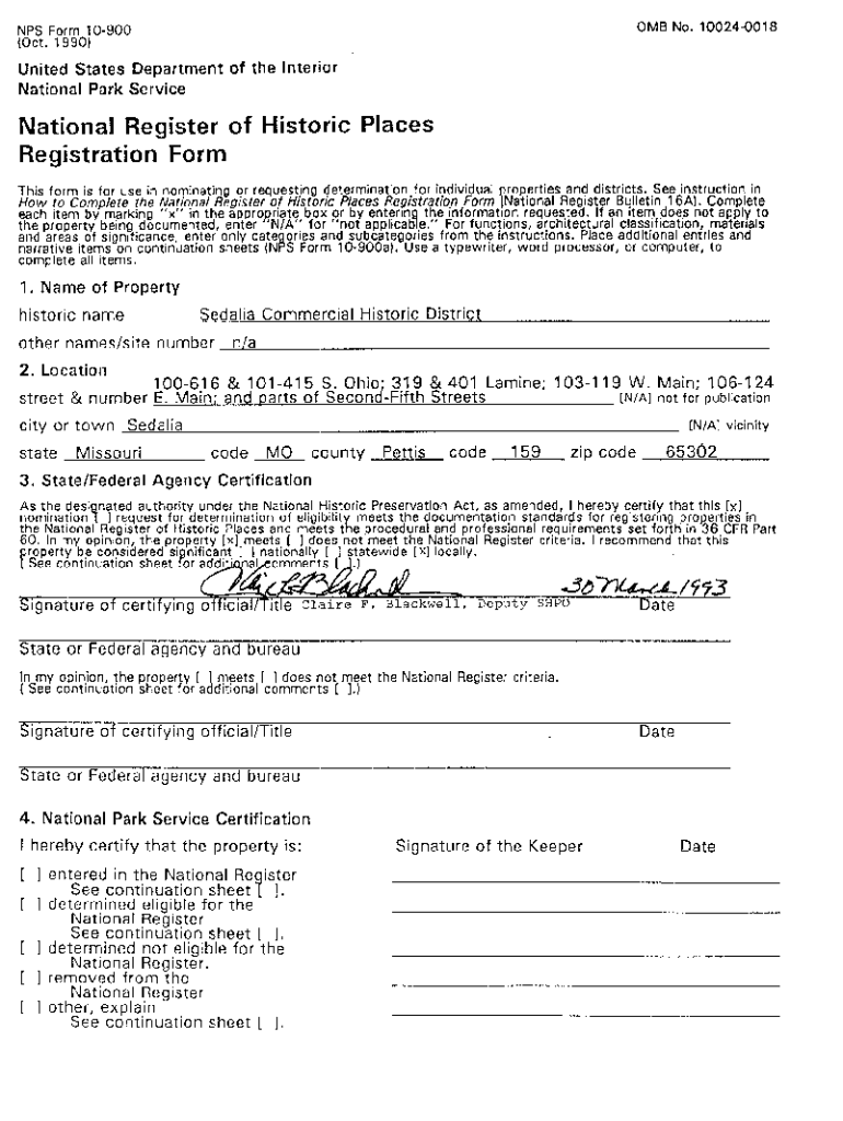 0 MB No. 100240018NPS Form 10900 (Oct. 19901 United States Department of the Interior National Park ServiceNational Register of Historic Places Registration Form This form is for use in nominating