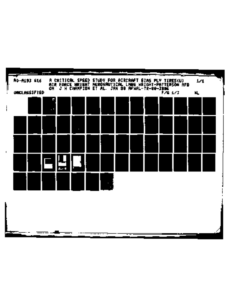 AIRS PLY TIRES(U)RFI FOR AIRCRAFT AIR FORCE MRI GMT AERONAUTICAL LABS MRIOHTPATTERSON A CRITICAL SPEED STUDY 616 400193 ON J N CHAMP ION ET AL. JAN 98 RFMALTR99366 M U UNCLASSIFIED F/ 1/3 NL/mph|h|hhhhEEEI