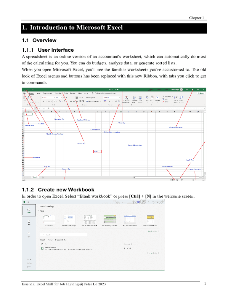 Chapter 11. Introduction to Microsoft Excel 1.1 Overview 1.1.1 User Interface A spreadsheet is an online version of an accountant\'s worksheet, which can automatically do most of the calculating for