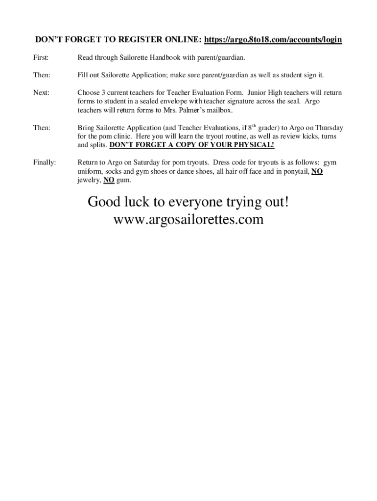 DON'T FORGET TO REGISTER ONLINE: https://argo.8to18.com/accounts/login First:Read through Silhouette Handbook with parent/guardian. Then:Fill out Silhouette Application; make sure parent/guardian