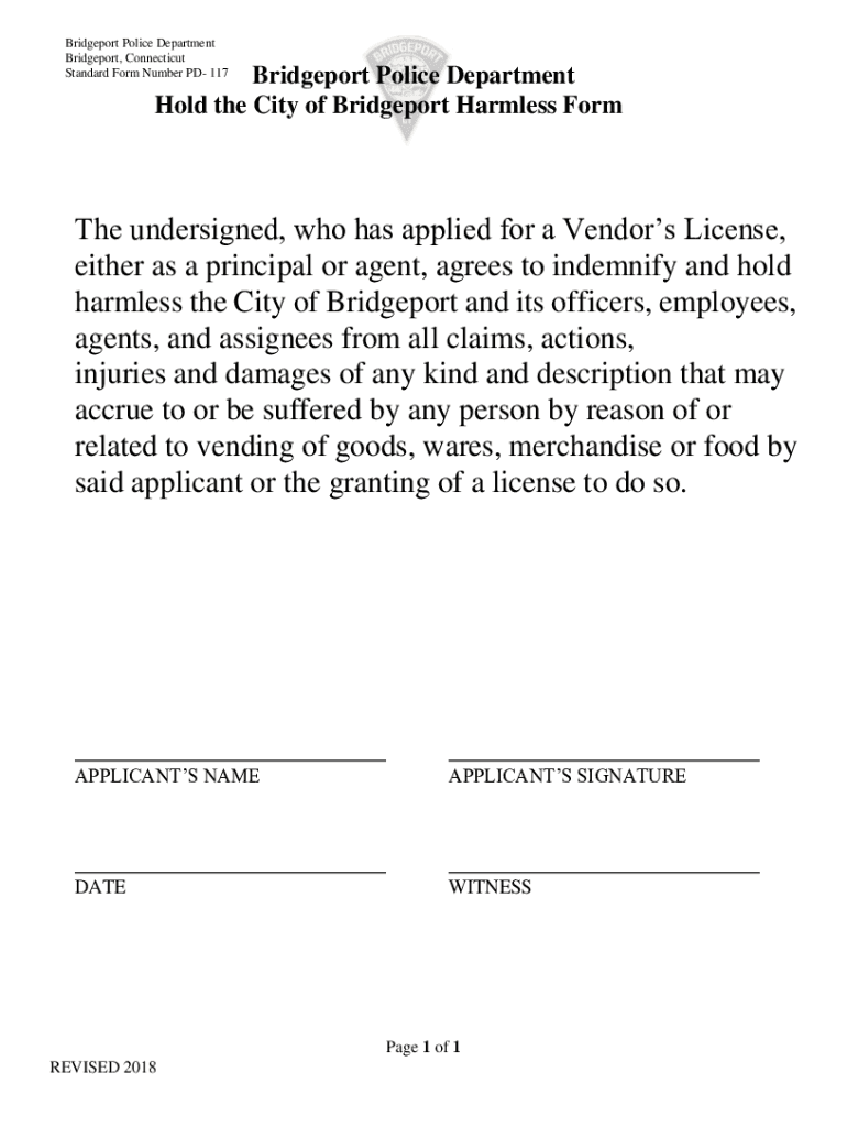 Bridgeport Police Department Bridgeport, Connecticut Standard Form Number PD 117Bridgeport Police Department Revised 10/2017 Hold the City of Bridgeport Harmless Forth undersigned, who has applied