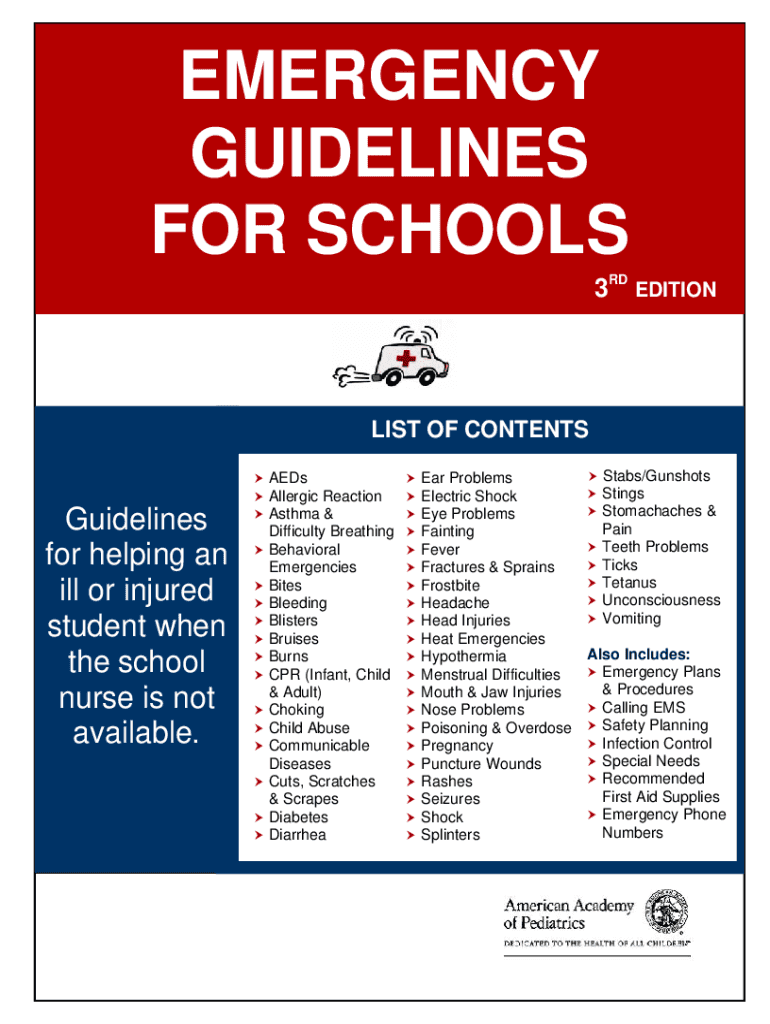 EMERGENCY GUIDELINES FOR SCHOOLS 3RD EDITIONS OF CONTENTSGuidelines for helping an ill or injured student when the school nurse is not available.h AED's h Allergic Reaction h Asthma oh h Difficulty
