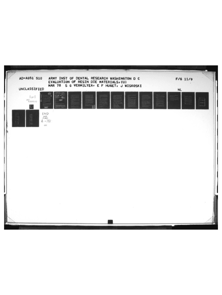 IHAOA051 510ARMY INST OF DENTAL RESEARCH WASHINGTON D C EVALUATION OF RESIN DIE MATERIALS. CU) MAR 78 S VERMILION. E F HUGE. 4 WISXOSXIU I UNCLASSIFIEDDATE FILIEO4 78 DDC_F/S 11/9 Pt. L, _/ U.uui4
