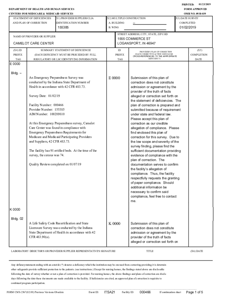 DEPARTMENT OF HEALTH AND HUMAN SERVICESFORM APPROVEDCENTERS FOR MEDICARE & MEDICAID SERVICES
