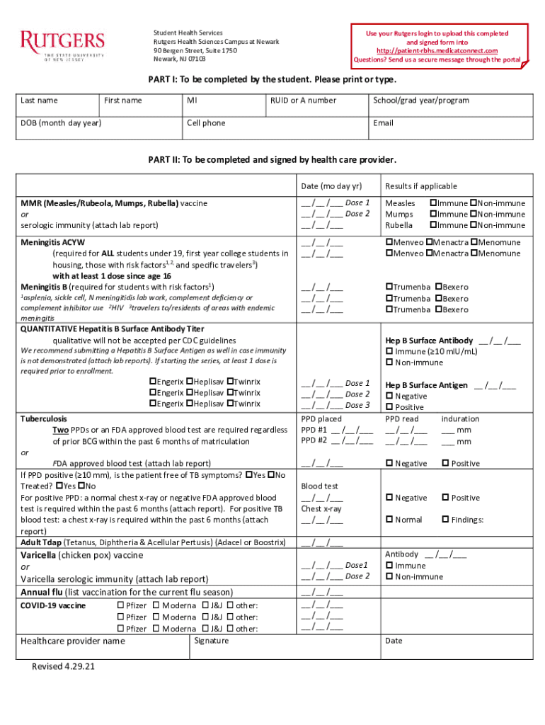 How to fill out student health services rutgers