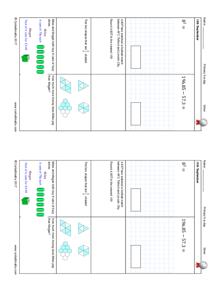 Name: ___ 15th September8! Primary 5adaySilver196.85 57.3 Name: ___ 15th September8! !!shadedSilverwww.corbettmaths.common much more money does Miles pay than Megan?196.85 57.3 Primary 5aday4,837