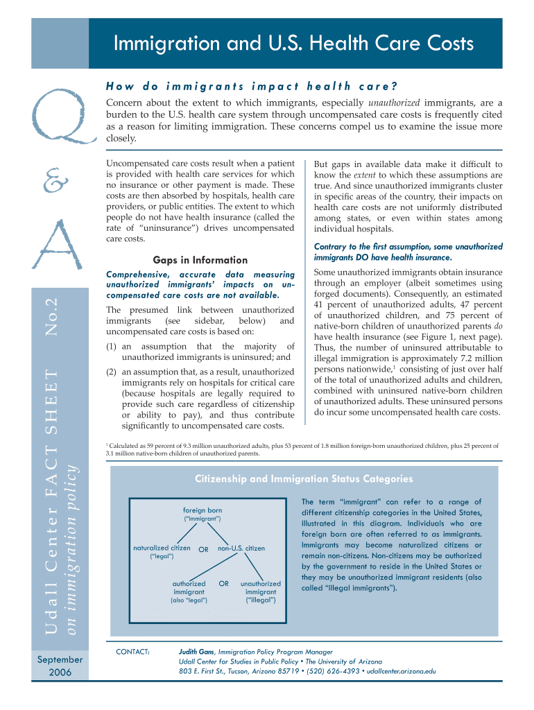 Get the free Immigration and US Health Care Costs - Udall Center - University of ...