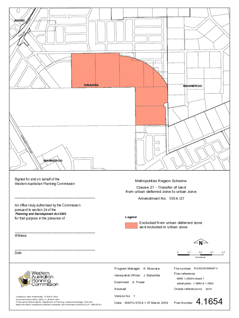 ROA DASH BYR JA N PISINAGRAWANNEROOBOYAGIN PARKED RO OO ER IN WAWANNEROOSigned for and on behalf of the Western Australian Planning Commission ___Metropolitan Region SchemeClause 27 Transfer of land