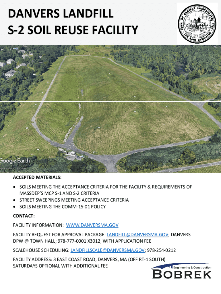 DANCERS LANDFILL S2 SOIL REUSE FACILITYACCEPTED MATERIALS: SOILS MEETING THE ACCEPTANCE CRITERIA FOR THE FACILITY & REQUIREMENTS OF MASSES MCP S1 AND S2 CRITERIA STREET SWEEPINGS MEETING ACCEPTANCE